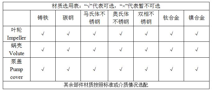材料的選用能完全參照API610中的材料表進(jìn)行選擇。